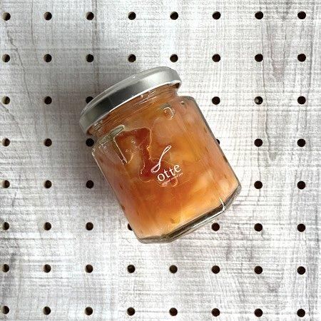 青森県産の白桃、ネクタリン、洋梨をミックスして、ドライローズの花びらを一緒に炊き込みました。